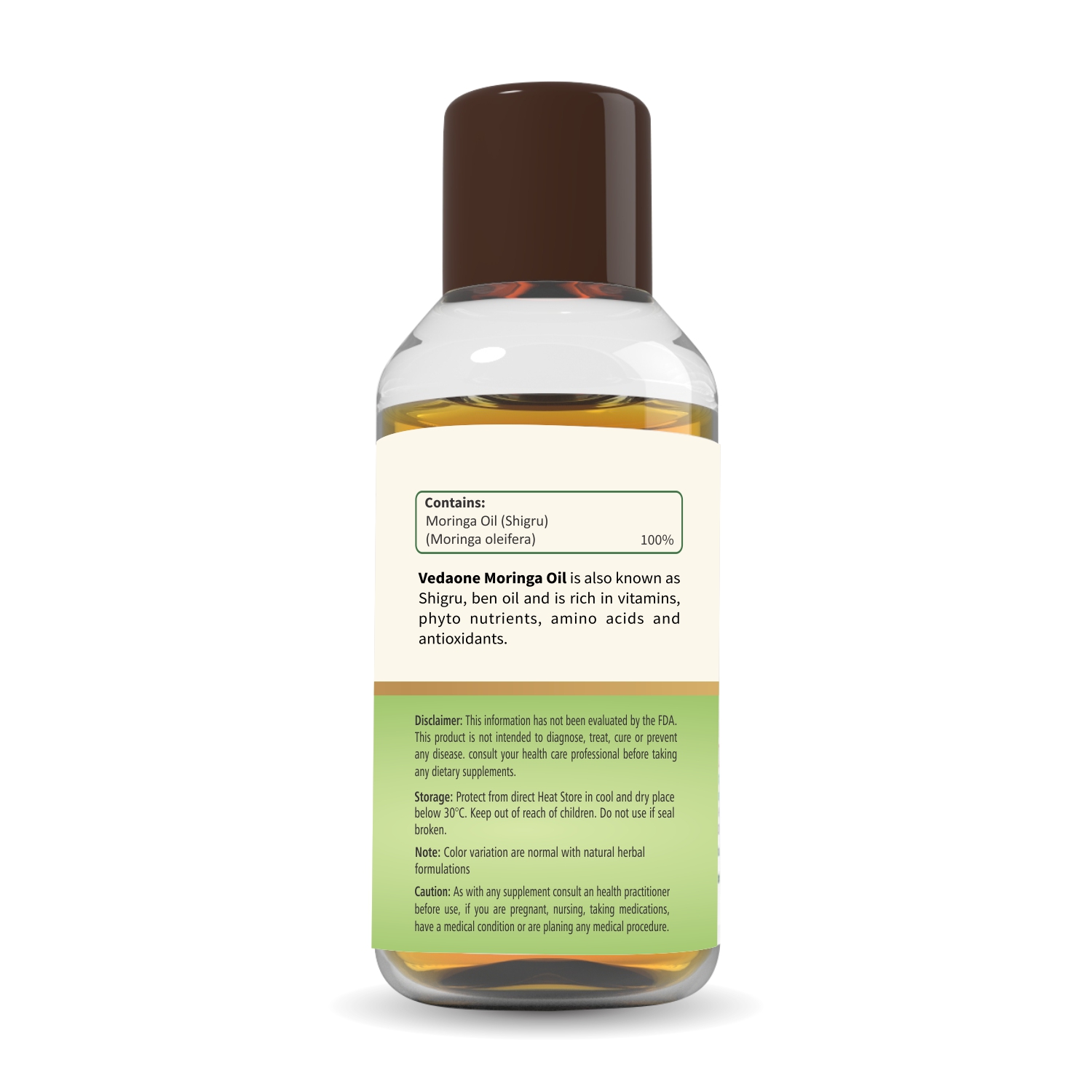 Vedaone Moringa Oil is a wellness supplement formulated with cold-pressed Moringa (Moringa oleifera) seed oil, traditionally valued for its nourishing and revitalizing properties. Moringa Oil is a natural source of oleic acid, tocopherols, plant sterols, and antioxidants.