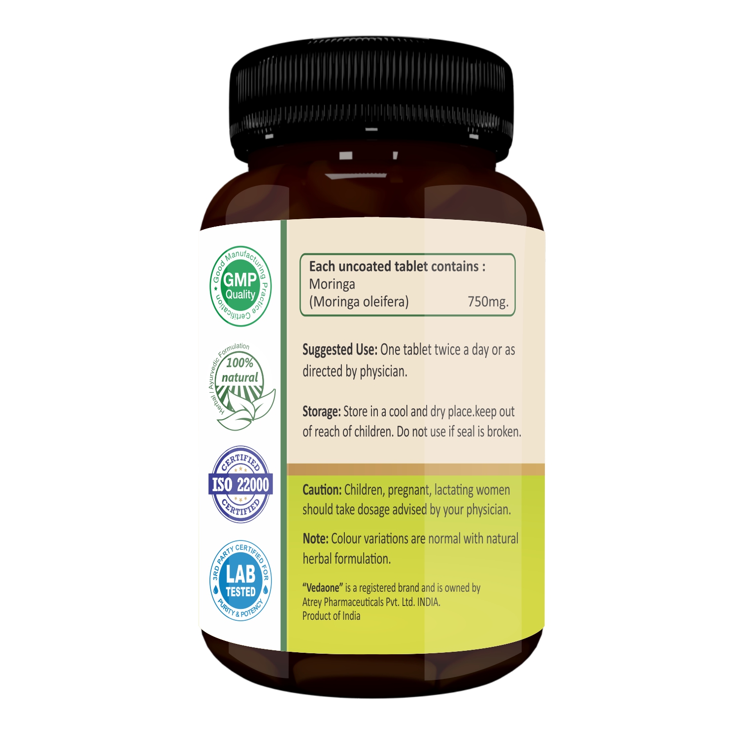 Vedaone Moringa Tablet is a wellness supplement formulated with Moringa (Moringa oleifera) leaf powder, traditionally valued in Ayurveda for its nourishing and revitalizing properties. Moringa is a natural source of vitamins, minerals, polyphenols, and plant-based antioxidants.